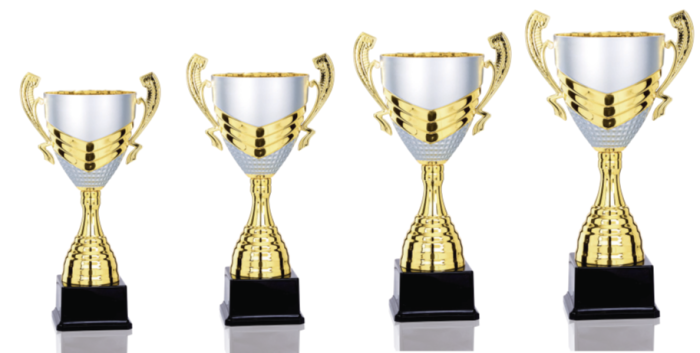Această cupă face parte din gama prestige și se remarcă prin eleganța sa atemporală. Fabricată din materiale rezistente, cu un finisaj argintiu lucios, mânere decorative, un element central auriu si o bază solidă din marmură neagră. Disponibilă în 5 dimensiuni (35 cm, 38 cm, 41 cm, 45 cm, 49 cm), oferă o soluție rafinată pentru premiere pe mai multe niveluri.